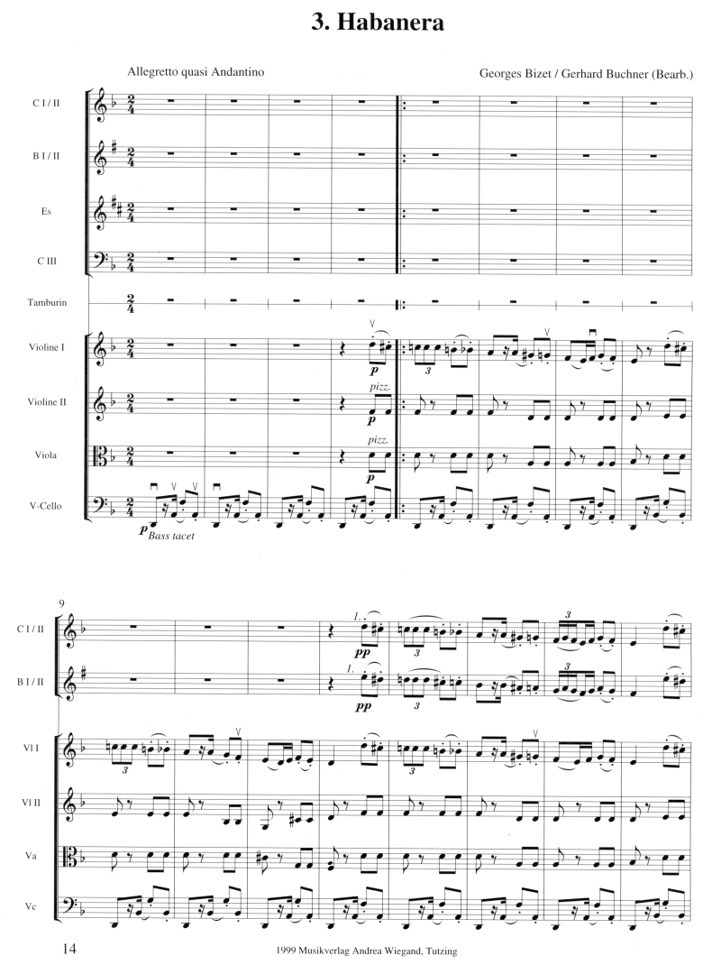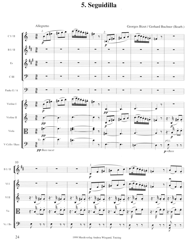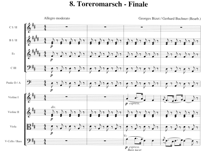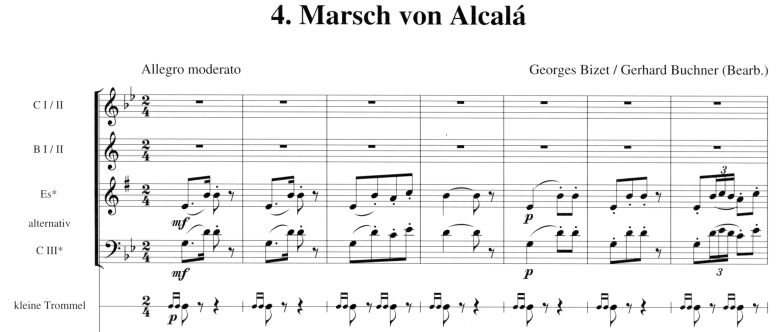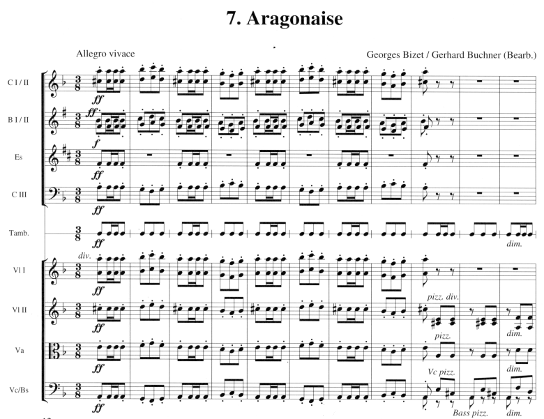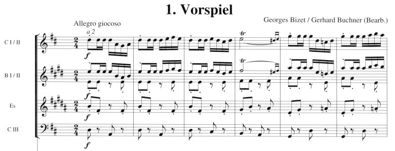 Bizets Musik begeistert vor allem durch ihre mitreissenden Rhythmen. Die Suite enthält neben den charakteristischen Märschen alle spanischen Tänze der Oper. Mit der berühmten Blumenarie kommt auch die lyrische Seite der Musik zur Geltung. Proben und Konzert lassen sich somit sehr abwechslungsreich gestalten.