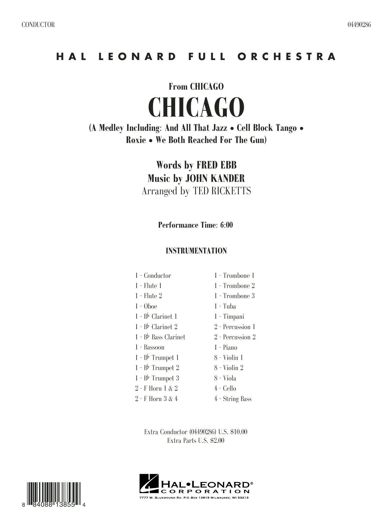 This Oscar-winning film is filled with memorable music from legendary songwriters Kander and Ebb. Ted Ricketts' version is entertainment-plus, including the highlight songs: And All That Jazz, Cell Block Tango, Roxie, and We Both Reached for the Gun.