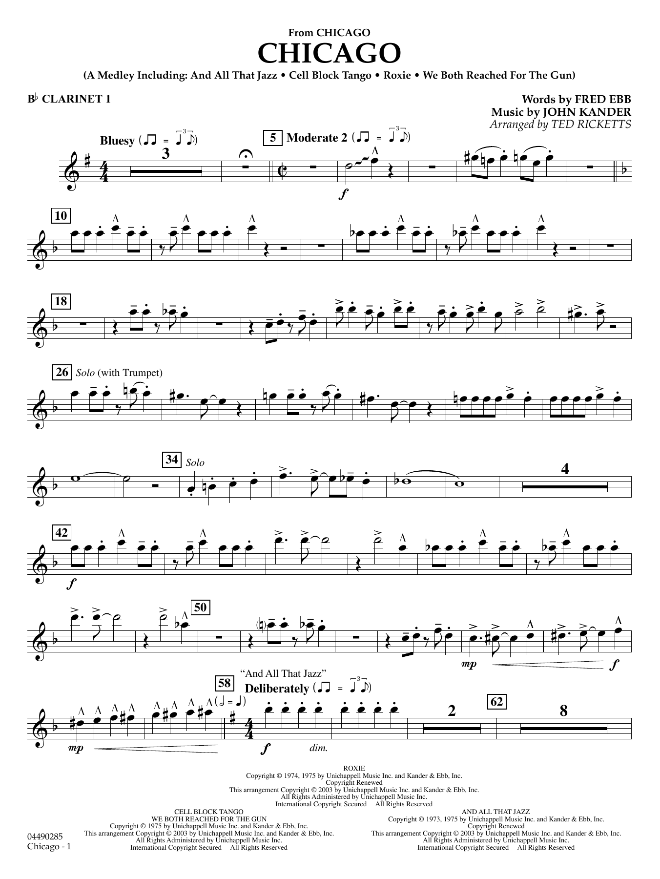 This Oscar-winning film is filled with memorable music from legendary songwriters Kander and Ebb. Ted Ricketts' version is entertainment-plus, including the highlight songs: And All That Jazz, Cell Block Tango, Roxie, and We Both Reached for the Gun.
