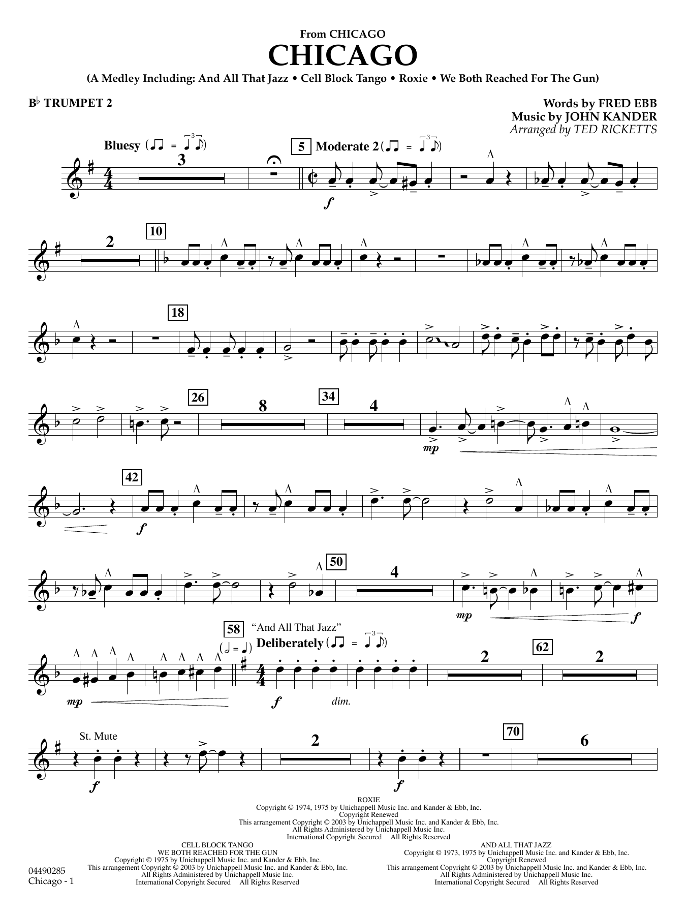This Oscar-winning film is filled with memorable music from legendary songwriters Kander and Ebb. Ted Ricketts' version is entertainment-plus, including the highlight songs: And All That Jazz, Cell Block Tango, Roxie, and We Both Reached for the Gun.