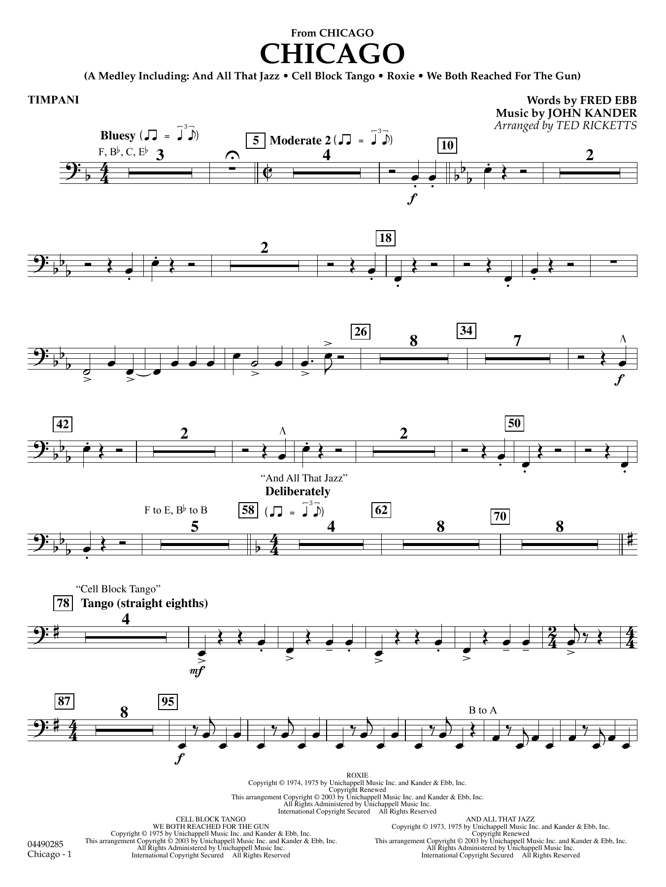 This Oscar-winning film is filled with memorable music from legendary songwriters Kander and Ebb. Ted Ricketts' version is entertainment-plus, including the highlight songs: And All That Jazz, Cell Block Tango, Roxie, and We Both Reached for the Gun.