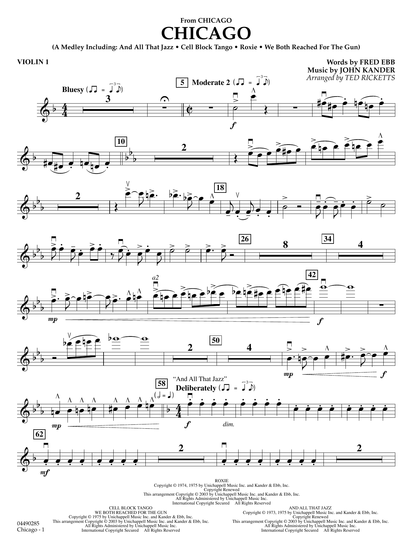 This Oscar-winning film is filled with memorable music from legendary songwriters Kander and Ebb. Ted Ricketts' version is entertainment-plus, including the highlight songs: And All That Jazz, Cell Block Tango, Roxie, and We Both Reached for the Gun.