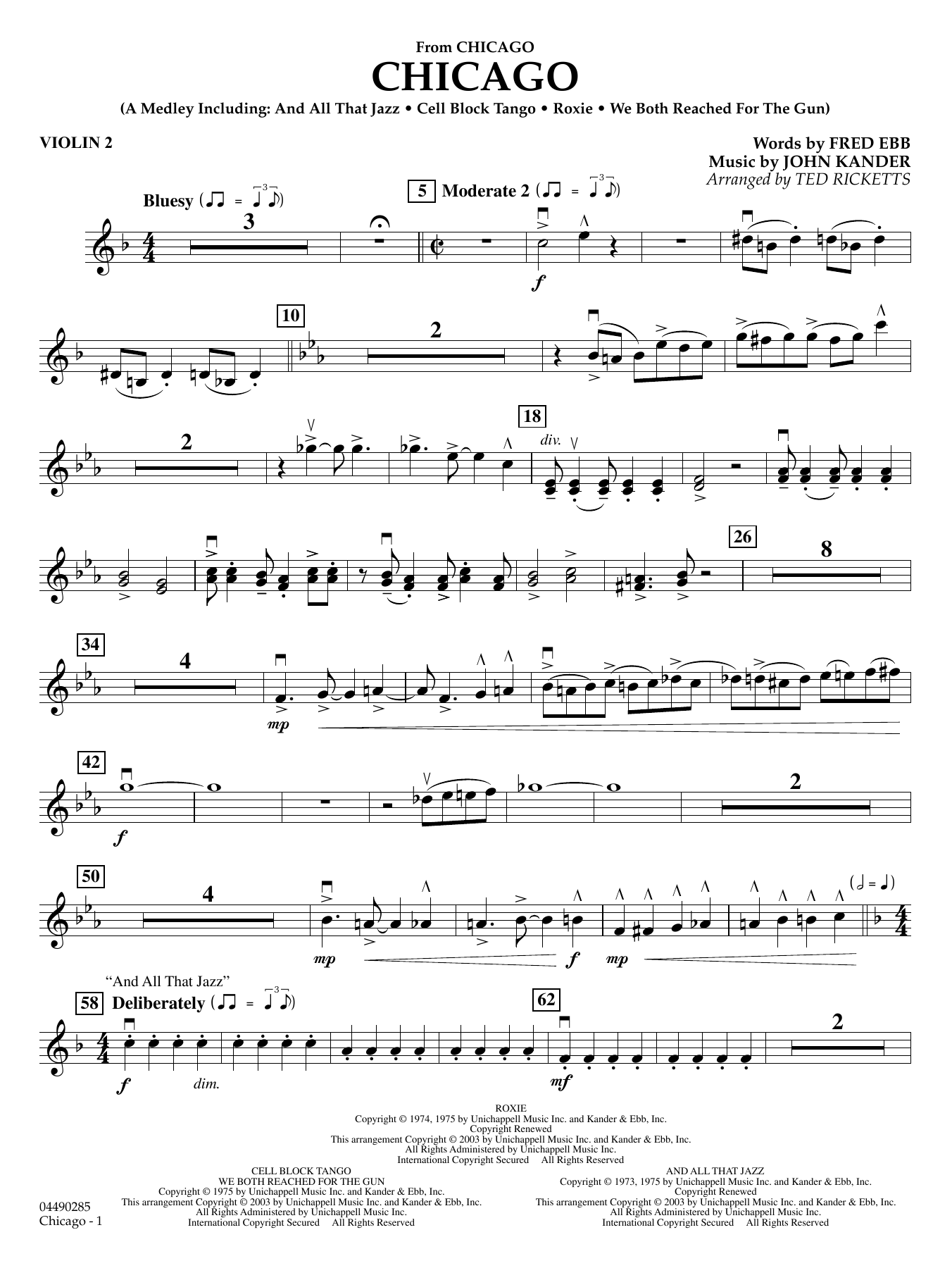 This Oscar-winning film is filled with memorable music from legendary songwriters Kander and Ebb. Ted Ricketts' version is entertainment-plus, including the highlight songs: And All That Jazz, Cell Block Tango, Roxie, and We Both Reached for the Gun.