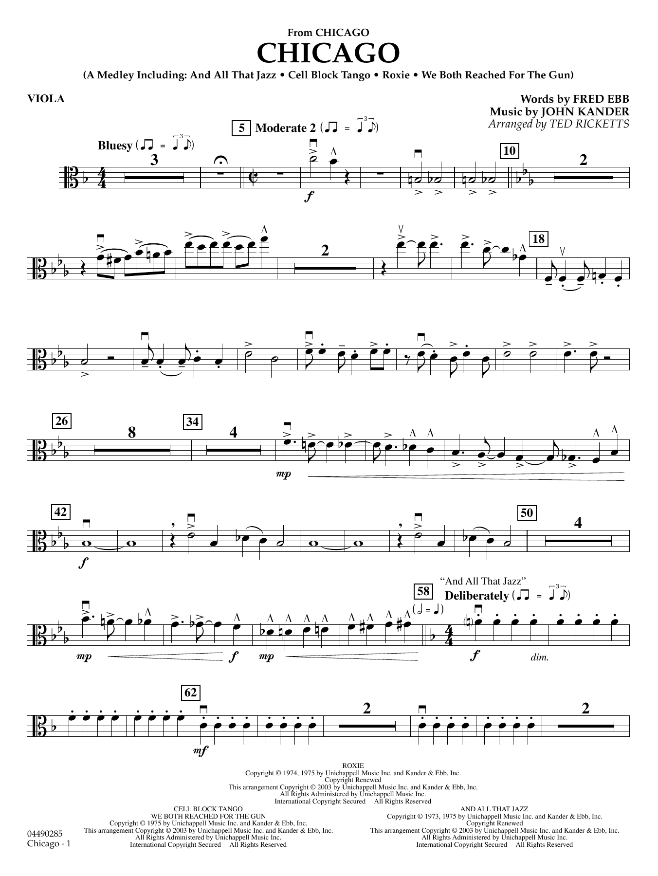 This Oscar-winning film is filled with memorable music from legendary songwriters Kander and Ebb. Ted Ricketts' version is entertainment-plus, including the highlight songs: And All That Jazz, Cell Block Tango, Roxie, and We Both Reached for the Gun.