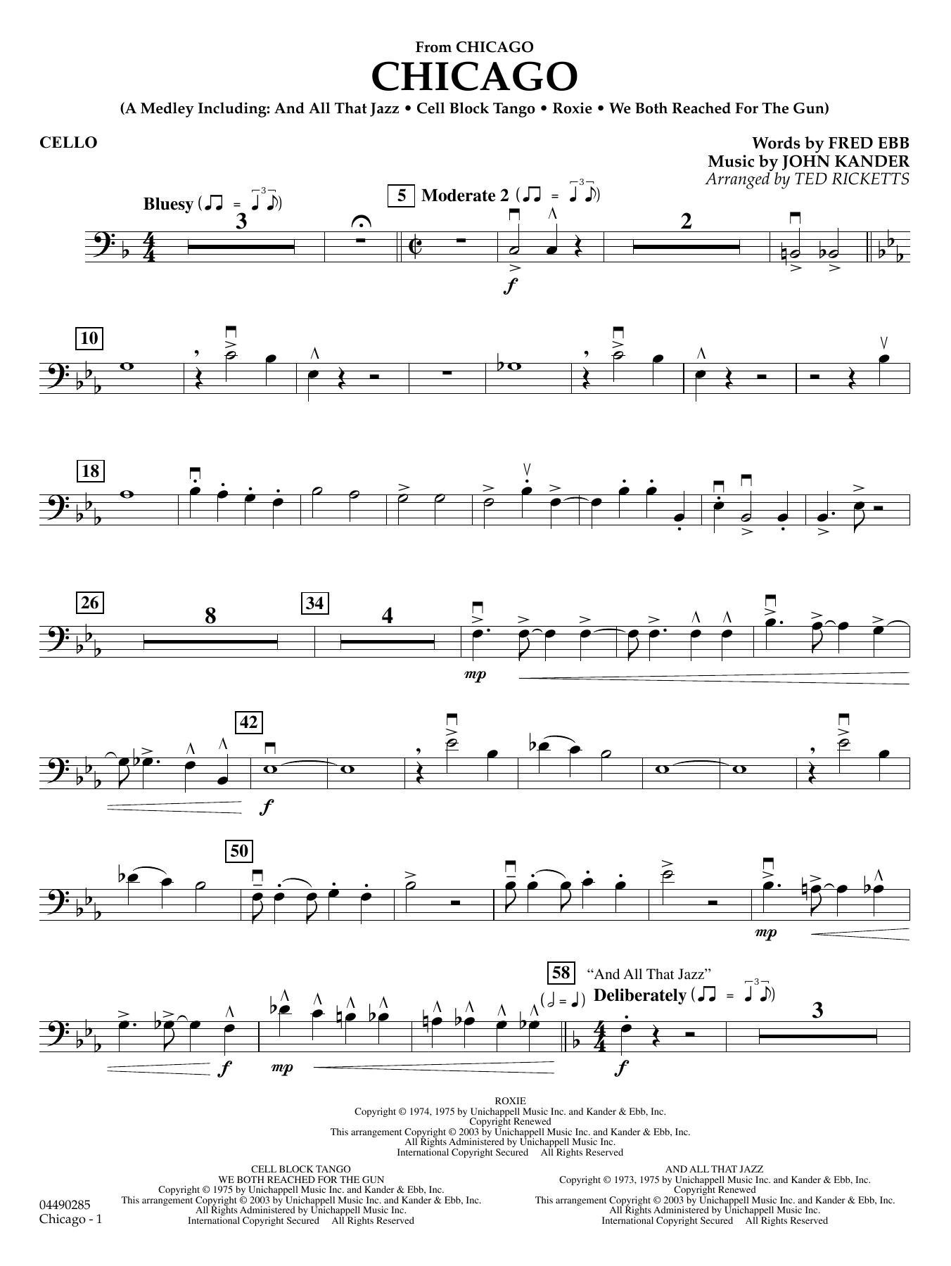 This Oscar-winning film is filled with memorable music from legendary songwriters Kander and Ebb. Ted Ricketts' version is entertainment-plus, including the highlight songs: And All That Jazz, Cell Block Tango, Roxie, and We Both Reached for the Gun.