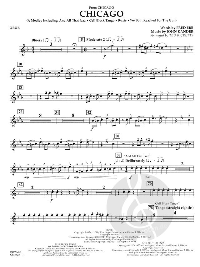 This Oscar-winning film is filled with memorable music from legendary songwriters Kander and Ebb. Ted Ricketts' version is entertainment-plus, including the highlight songs: And All That Jazz, Cell Block Tango, Roxie, and We Both Reached for the Gun.