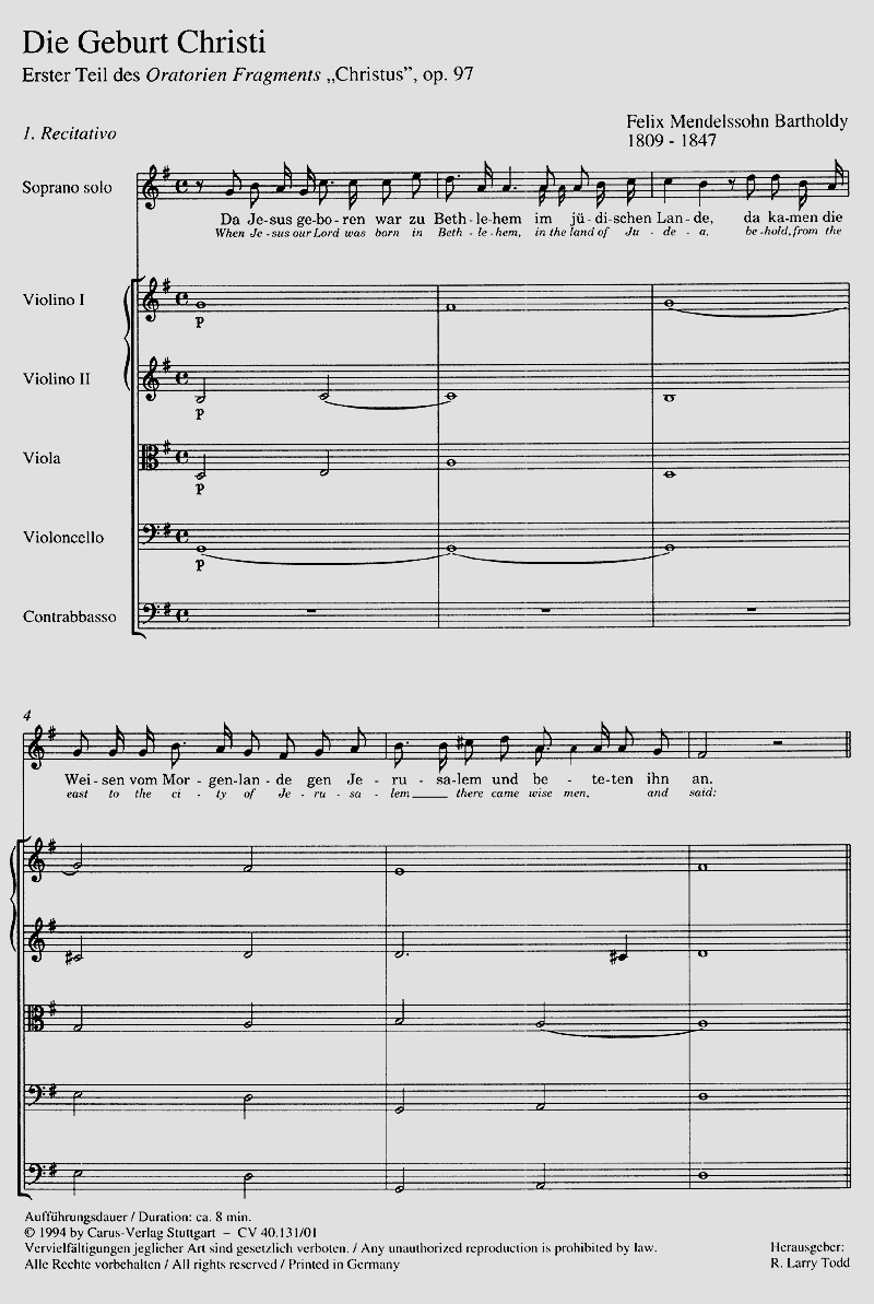 - Besetzung Gesang (hoch), Gemischter Chor (SATTBB) und Orchester