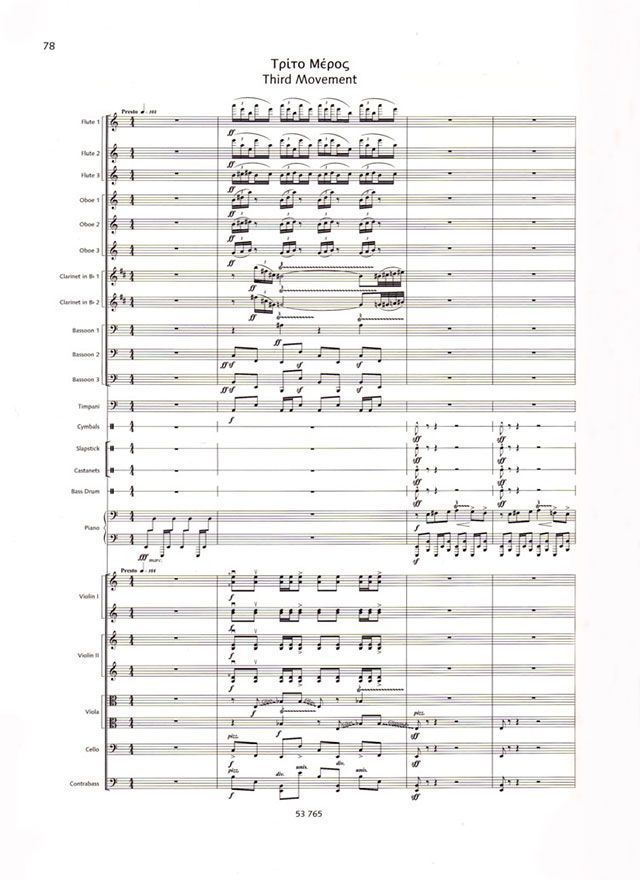 Knapp 50 Jahre nach der Veröffentlichung seines ersten Klavierkonzerts lässt Mikis Theodorakis diesem nun ein zweites Konzert für Klavier und Orchester folgen.Der anspruchsvolle Klavierpart ist wie schon im ersten Klavierkonzert deutlich perkussiven Charakters. Er stellt im Diaolog mit dem Orchester und seinem umfangreich besetzten Schlagwerkapparat Studien über die Entwicklung archaischer Motive und Rhythmen an. Ein daraus entstehender, kraftvoll brodelnder rhythmischer Sog vereint Klavier und Orchester und überwindet den klassischen Kontrast zwischen Soloinstrument und Orchester.