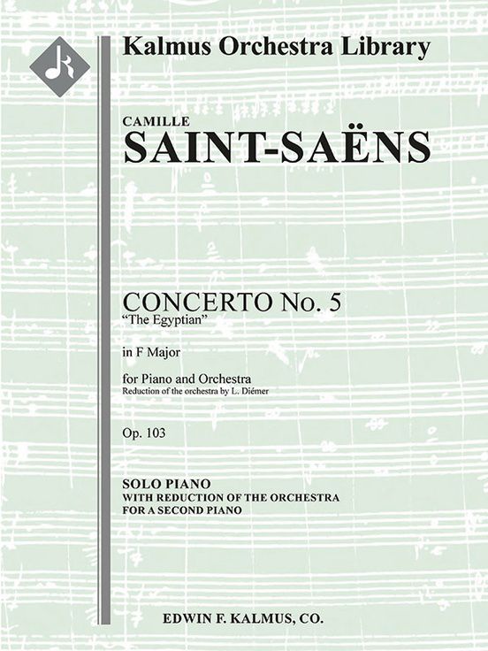 Camille Saint-Saëns (1835-1921) wrote his final piano concerto, Concerto No. 5, Op. 103, in 1896, which debuted that year with the composer himself performing the solo part. It derives its subtitle, "The Egyptian", from a trip to Northern Africa that Saint-Saëns took in the year of its composition. Absorbing a near-eastern musical flavor, the concerto depicts a sea voyage with its glimmering scales and variety of exotic tunes. The evocative second movement, inspired by a Nubian love song, depicts the sights and sounds enjoyed while floating down the Nile. Piano reduction by Louis Diémer.