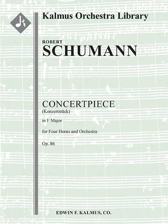 Das KONZERTSTÜCK in F-Dur op. 86 ist ein Stück für vier Hörner und Orchester von Robert Schumann (1810-1856). Er komponierte es 1849, als er in Dresden lebte, nachdem er Joseph-Rudolph Lewy auf dem neu entwickelten Ventilhorn hatte spielen hören. Der Komponist erkannte die ungewöhnliche Besetzung an und bezeichnete es gegenüber seinem Freund Hiller als "eines meiner besten Stücke". Die Uraufführung fand am 25. Februar 1850 mit den Hornisten des Leipziger Gewandhauses unter der Leitung von Julius Rietz statt. Besetzung: 2+Picc.2.2.2: 2.2.3.0: Timp: Str (9-8-7-6-5 im Satz): Soli Hn(4) im Satz.