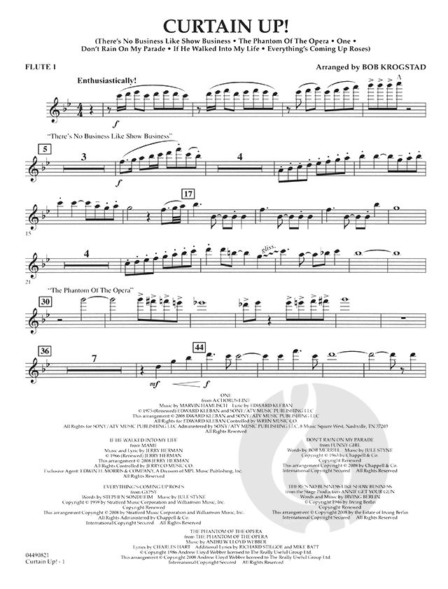 Master arranger Bob Krogstad has crafted a brilliant showcase of some of Broadway's most beloved songs. Orchestras everywhere will love his creative treatments as he takes us on a musical journey through stage history, spotlighting many of the enduring songs of our time. Includes: There's No Business like Show Business, Phantom of the Opera, One, Don't Rain on My Parade, If He Walked into My Life, and Everything's Coming Up Roses.