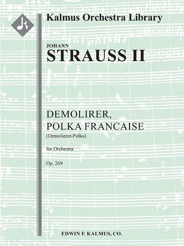 DEMOLIERER, POLKA FRANCAISE (DEMOLIERER-POLKA), op. 269 ist eine Polka von Johann Strauss II (1825-1899), die 1862 anlässlich des Abrisses der mittelalterlichen Stadtmauern Wiens nach einem Erlass von Franz Josef I. zur Erweiterung der Stadtgrenzen komponiert wurde. Die Uraufführung fand am 22. November 1862 im Festsaal des "Sperl" statt. Trotz ihres ungewöhnlichen Namens nimmt sie musikalisch keinen Bezug auf dieses Ereignis, sondern behält den für die Wiener Polkas jener Zeit so typischen heiteren Charakter. Besetzungen: 1+Picc.2.2.2: 4.2.1.0: Timp.Perc(1): Str (9.8.7.6.5 im Satz): Pno Cond Sc im Satz.