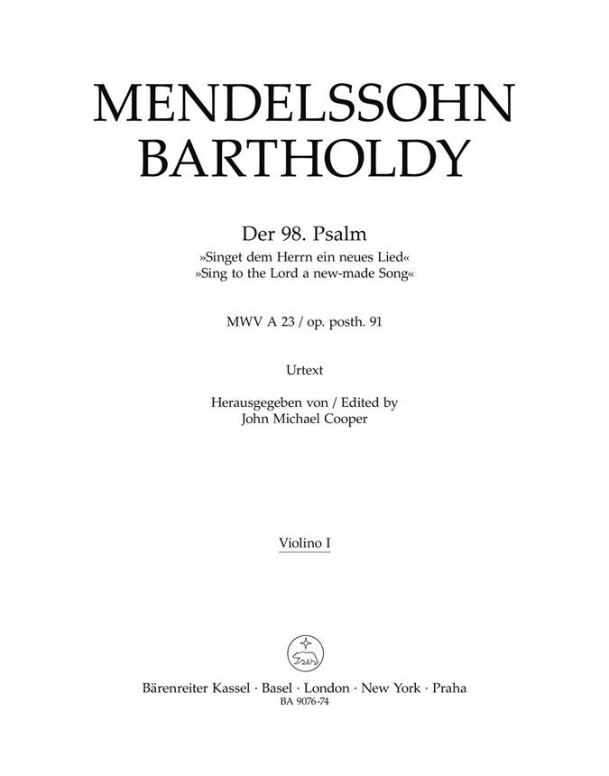 > Mendelssohns letzter Orchesterpsalm im Bärenreiter Urtext