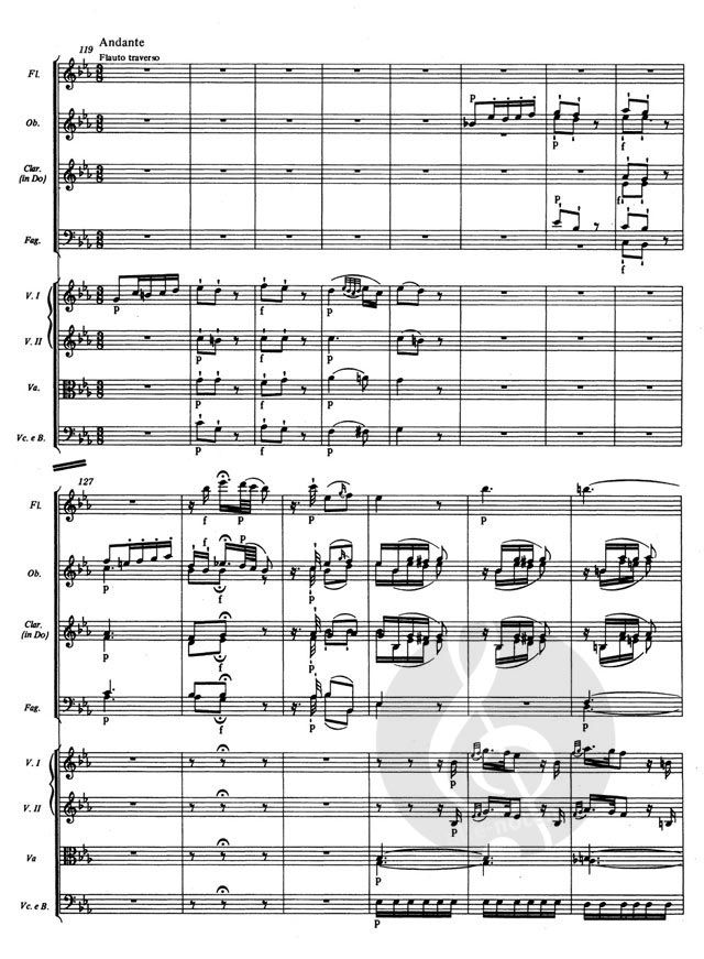 Der Konzertschluss von André, etwas über 90 Takte lang, erscheint hier neu ediert und gesetzt nach der Erstausgabe der Stimmen und nach Andrés Autograph, das großzügig vom André Archiv zur Verfügung gestellt wurde.