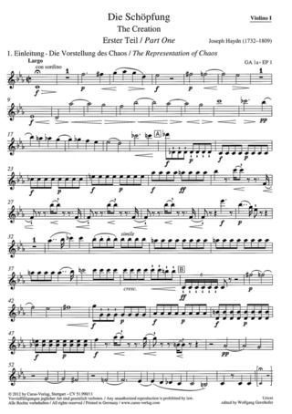Zur zweisprachigen Partitur (deutscher und englischer Originaltext von G. van Swieten) werden Klavierauszug und Chorpartitur im Interesse einer guten Lesbarkeit jeweils in zwei getrennten Ausgaben (deutsch oder englisch) angeboten.