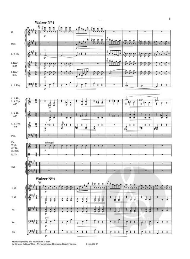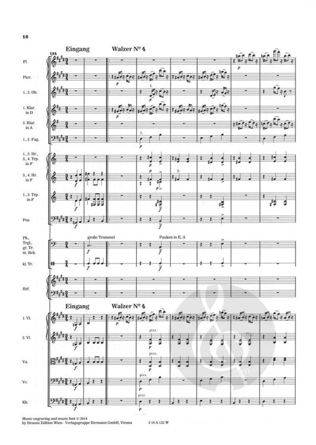 Zusätzliche Transpositionen für Stimmen transponierender Instrumente sind ebenso Bestandteil des Orchestermaterials wie ausreichende Dubletten für Streicher und Schlagzeug.