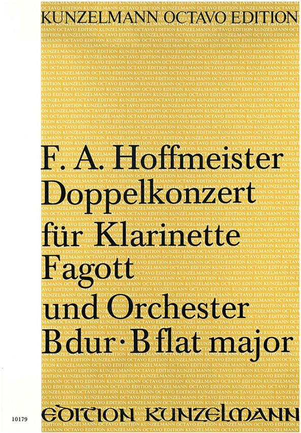Das Doppelkonzert für Klarinette und Fagott ist zu Lebzeiten von Hoffmeister unter dem Titel Symphonie concertante im Verlag von Joh. Andre in Offenbach erschienen. Ein unvollständiges Stimmenmaterial dieser Erstausgabe wird in der Zentralbibliothek Solothurn aufbewahrt. Die dort fehlenden Stimmen, nämlich Solo-Fagott, Oboe I+II und Horn I+II fanden sich in einem kompletten Stimmenmaterial, das die Stadt- und Universitätsbibliothek Frankfurt am Main aufbewahrt. Hermann Müller