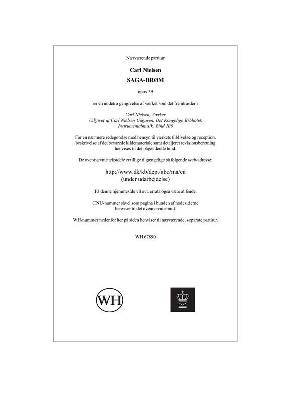 Score for Saga Dream Op. 39 by Carl Nielsen.