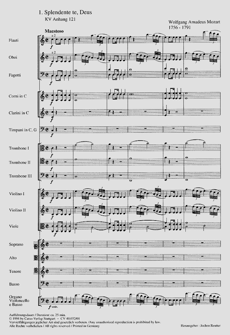 - Besetzung Soli, Gemischter Chor (SATB), Orchester und Basso Continuo