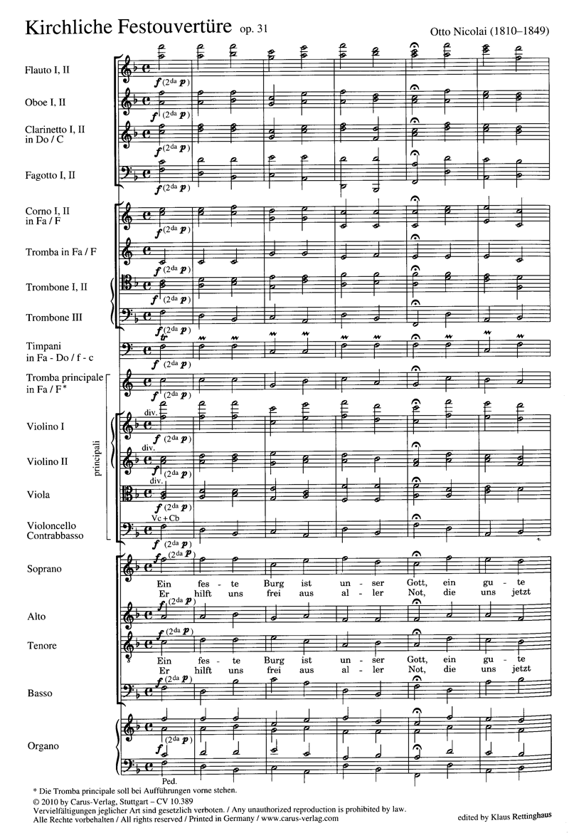 Kirchliche Festouvertüre. Coro SATB, 2 Fl, 2 Ob, 2 Clt, 2 Fag, 2 Tr, 2 Cor, 3 Trb, Timp, Str, Org.