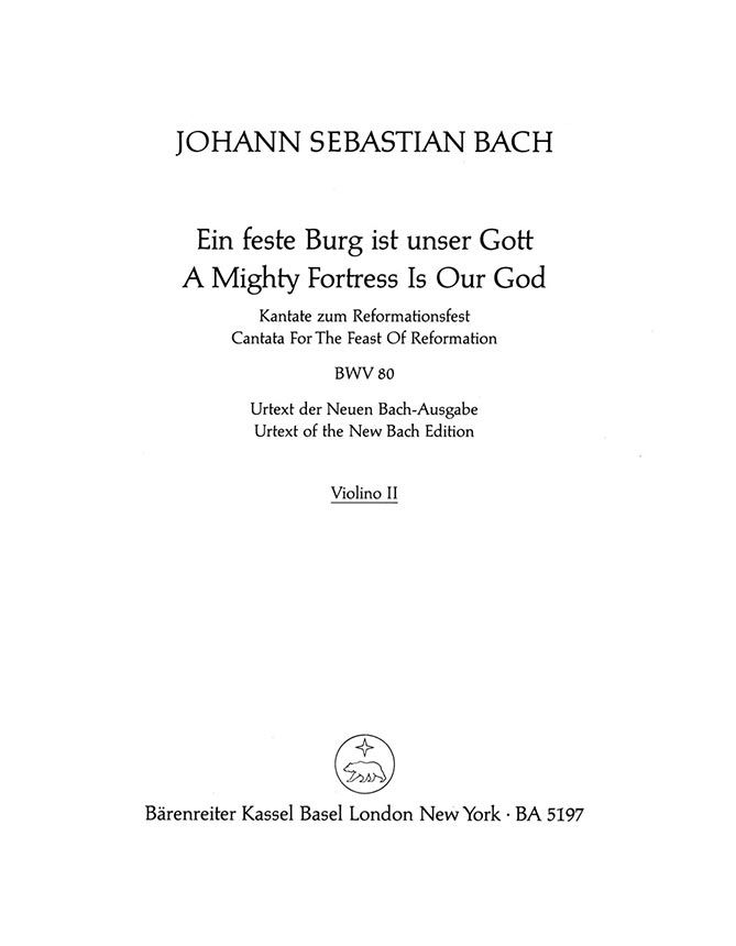 Kantate zum Reformationsfest. Urtext der Neuen Bach-Ausgabe. Sopran solo, Alt solo, Tenor solo, Bass solo, Gemischter Chor-SATB, Oboe (3)/ Oboe d'amore/ Oboe-dacc, Streicher, Basso continuo