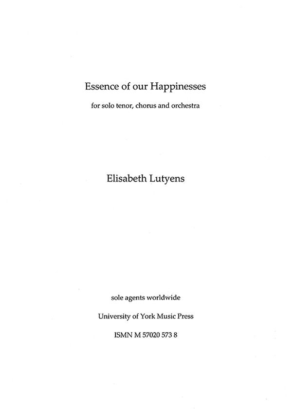 For Tenor, Mixed Chorus (min 16 singers), Orchestra. Published 1968. Text: Abu Yasid, Donne, Rimbaud. First performance: Richard Lewis, BBC SO and Chorus, conducted by Norman Del Mar, BBC Proms, 8th September 1970.