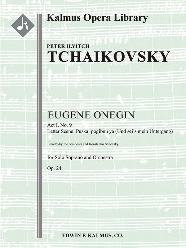 EUGENE ONEGIN, basierend auf einem Versroman von Alexander Puschkin, ist die bekannteste Oper von Peter Iljitsch Tschaikowsky (1840-1893). Die Geschichte schildert das Leben des titelgebenden Onegin, eines russischen Dandys, der sich selbst, seine Gefühle und den Wert des Lebens nicht versteht, was ihn dazu veranlasst, die leidenschaftliche Liebeserklärung einer Frau, auf die er herabschaut, zurückzuweisen und stattdessen die Verlobte seines Freundes zu verfolgen, die er daraufhin in einem Duell tötet. Die berühmte BRIEF-Szene (Puskai pogibnu ya), die im ersten Akt spielt, zeigt Tatjana allein in ihrem Schlafzimmer, wo sie in einer Reihe von gequälten Entwürfen einen Brief schreibt, in dem sie ihre Liebe zu Onegin ausdrückt. Instrumentation: 2.2.2.2: 4.2.3.0: Timp: Hp: Str (4.4.3.3.3 im Satz): Solo Sop.