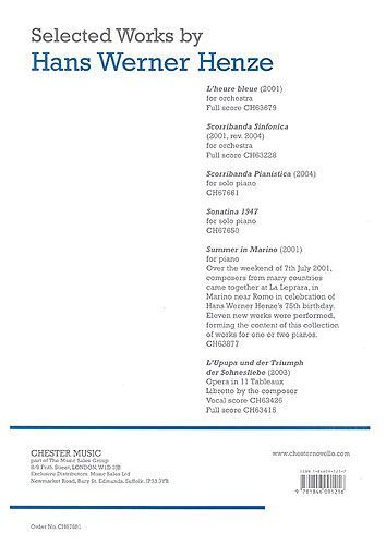 Henze's Fünf Botschafen Für Die Königin Von Saba was commissioned by Radio France. It received its première on 3rd February 2005 at the Théâtre Des Champs-Élysées, Paris by the Orchestre National de France. The five short but complex pieces are presented here in full score.