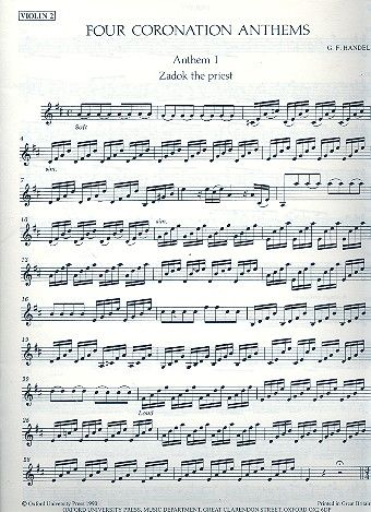 Truly versatile and user-friendly editions; a practical approach for performers, informed by the very highest standard of scholarship.for SATB chorus, 3 trumpets, timpani, 2 oboes, 2 bassoons, strings, and continuoThese four anthems have long had a special place at the heart of the English choral tradition. They were composed for the coronation of George II in 1727.Full scores, vocal scores, and orchestral material are available on hire. 2 Ob, 2 Fag, 3 Tpt, Timp, Strings, Cont.