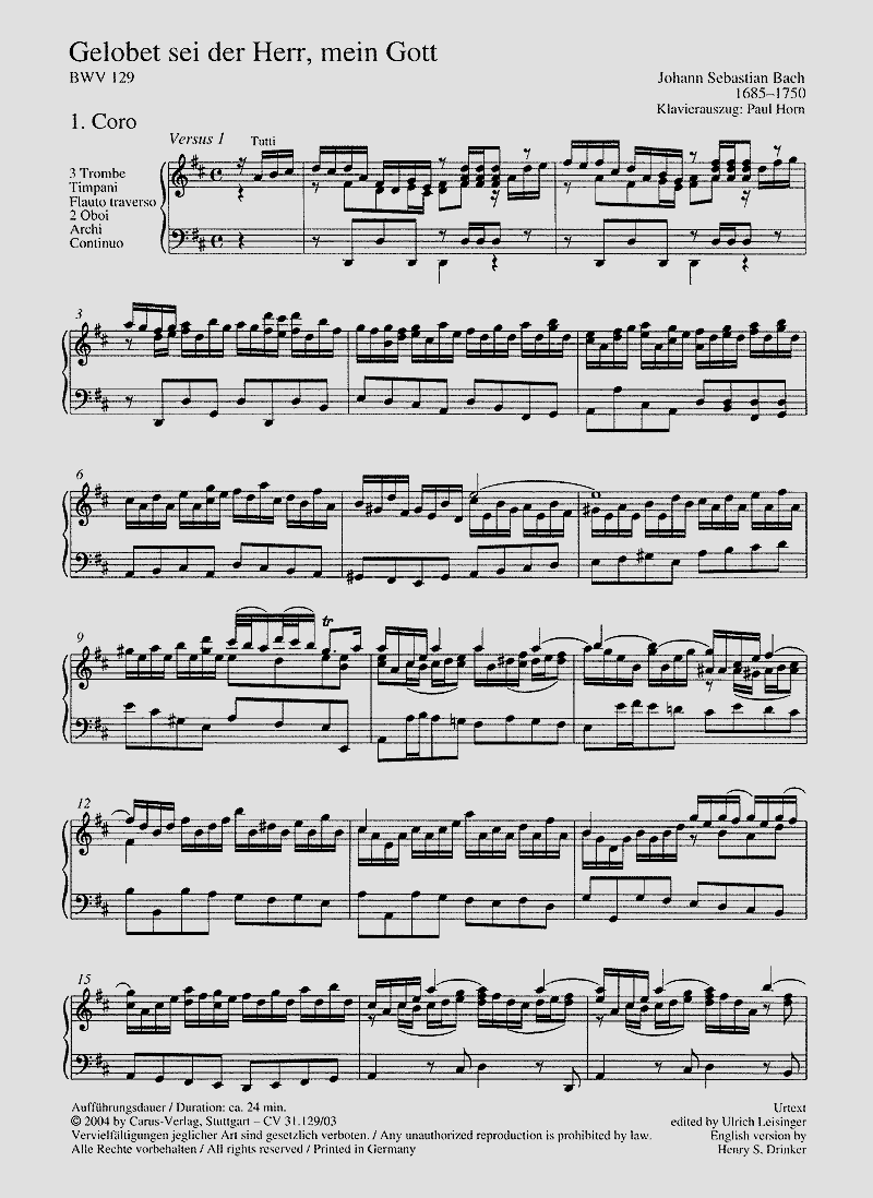 - Besetzung Soli, Gemischter Chor (SATB), Orchester und Basso Continuo