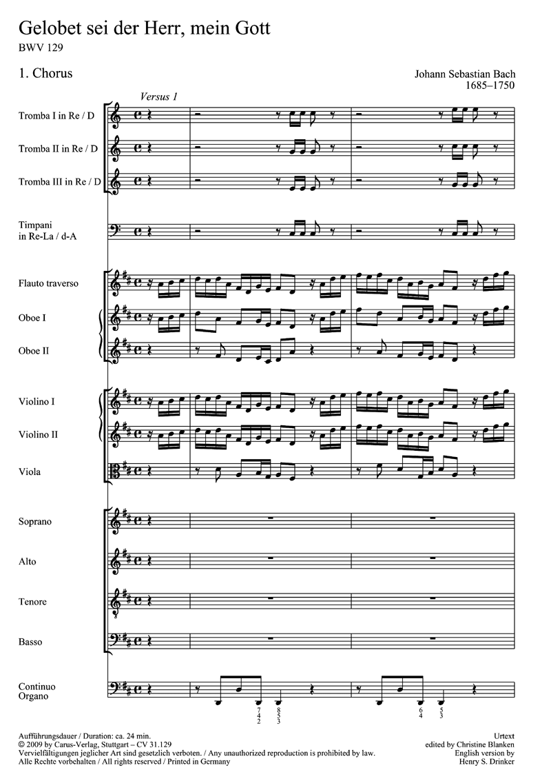 - Besetzung Soli, Gemischter Chor (SATB), Orchester und Basso Continuo