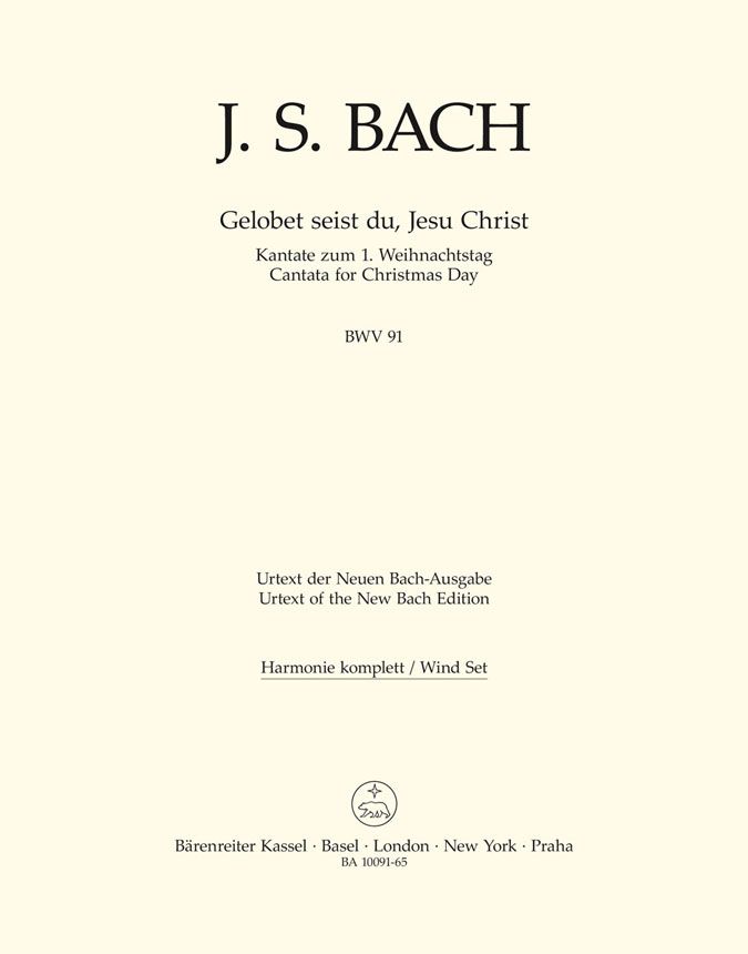 Kantate zum 1. Weihnachtstag, nach der Neuen Bach-Ausgabe. Sopran solo, Alt solo, Tenor solo, Bass solo, Gemischter Chor-SATB, Oboe (3), Horn (2), Pauke, Streicher, Basso continuo