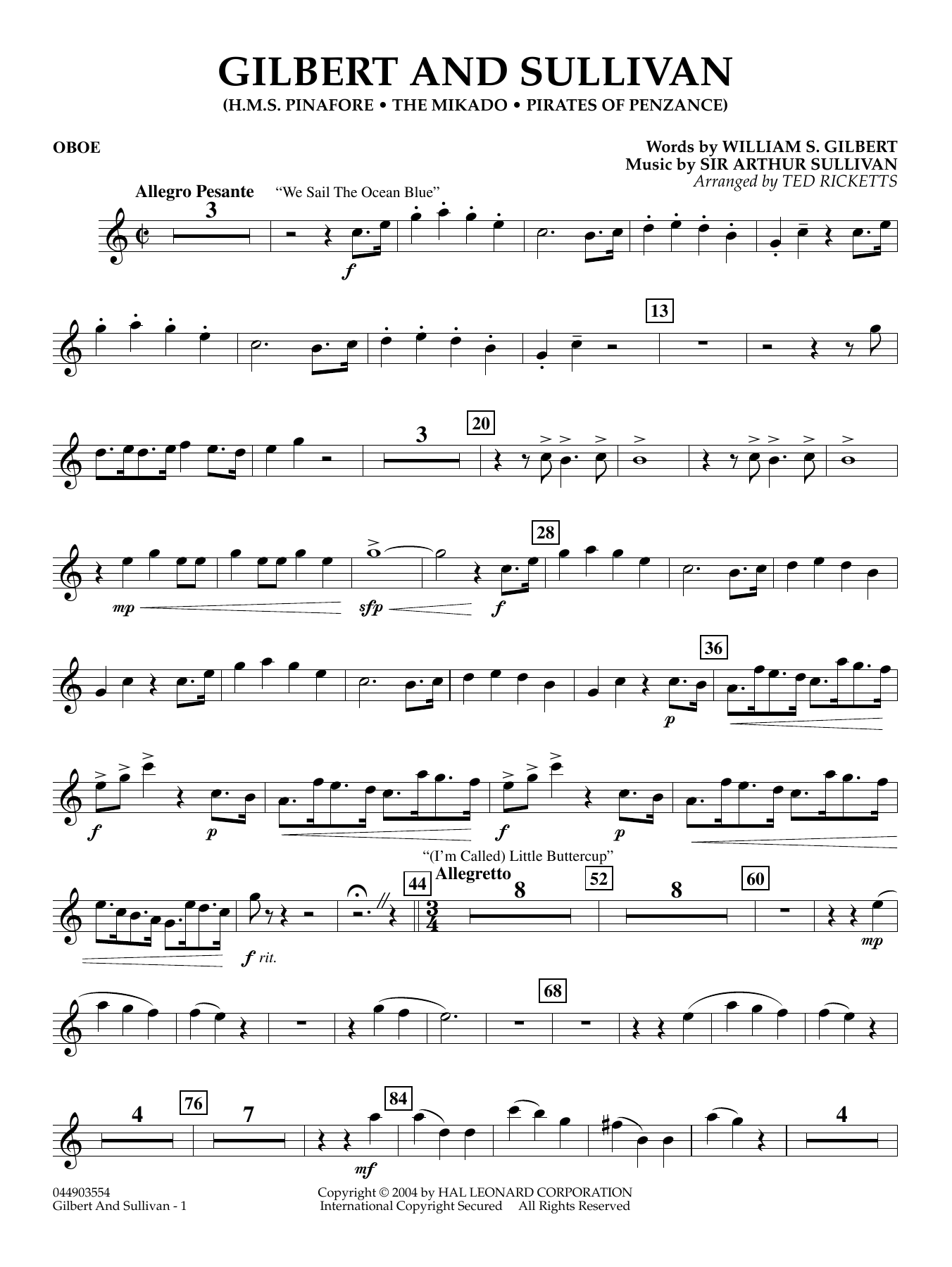Masters of the operetta, Gilbert and Sullivan left the musical world a legacy of marvelously playful and tuneful songs. This entertaining medley includes We Sail the Ocean Blue and (I'm Called) Little Buttercup from'HMS Pinafore, ' Overture and Three Little Maids from 'Mikado, ' and Poor Wand'ring One, I Am the Very Model, and With Cat-Like Tread from 'Pirates of Penzance. '