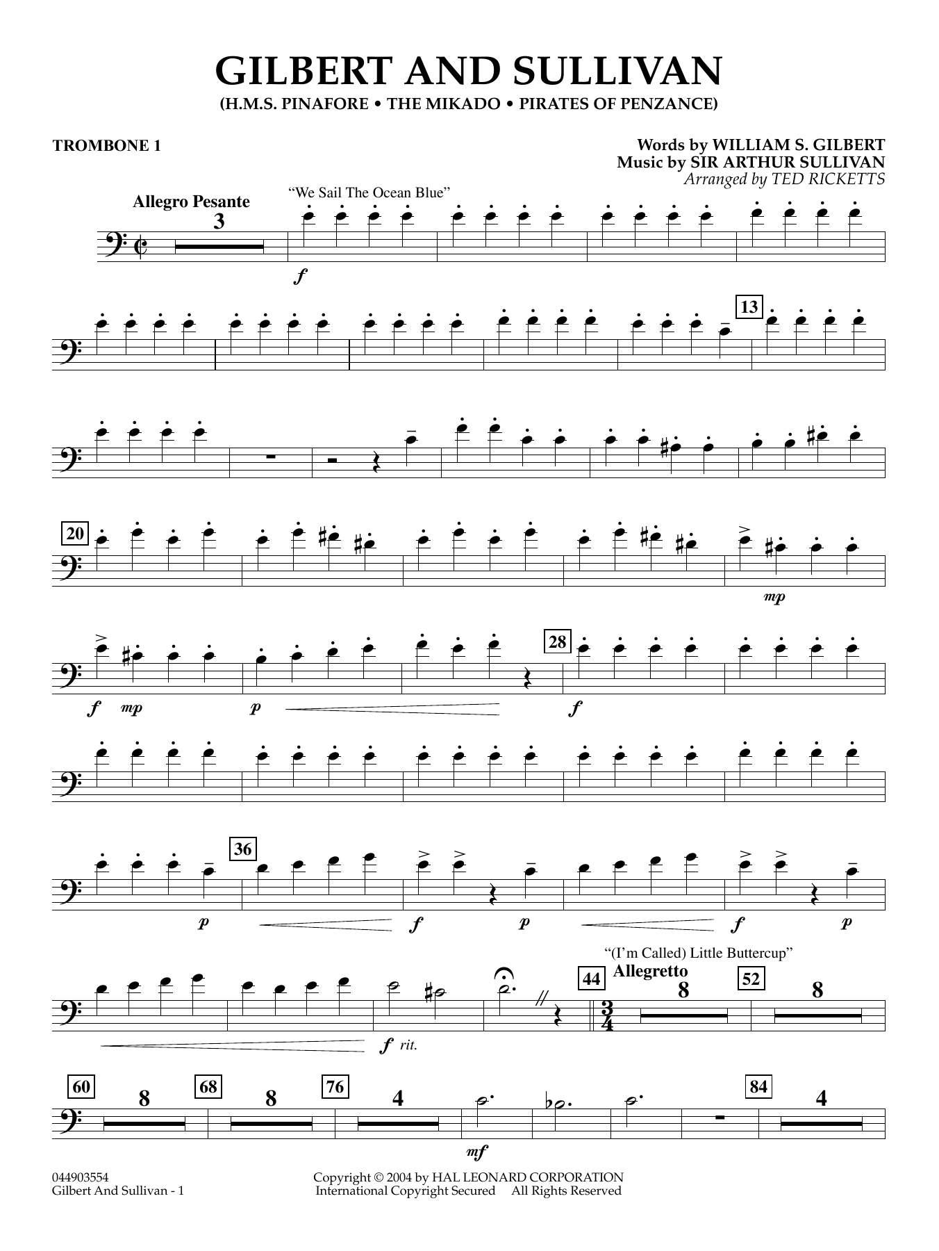 Masters of the operetta, Gilbert and Sullivan left the musical world a legacy of marvelously playful and tuneful songs. This entertaining medley includes We Sail the Ocean Blue and (I'm Called) Little Buttercup from'HMS Pinafore, ' Overture and Three Little Maids from 'Mikado, ' and Poor Wand'ring One, I Am the Very Model, and With Cat-Like Tread from 'Pirates of Penzance. '