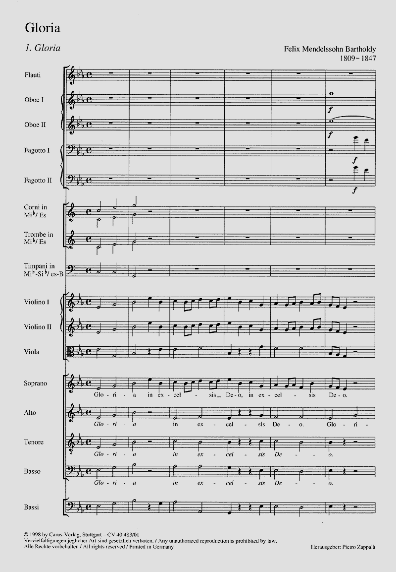 Erste grössere Kirchenkomposition des 13jährigen Mendelssohn, die unter dem Einfluss seines Lehrers und Leiter der Berliner Singakademie Carl Zelter entstanden ist. Soli SSATB, Coro SATB, 2 Fl, 2 Ob, 2 Clt, 2 Fg, 2 Cor, 2 Tr, Timp, 2 Vl, Va, Vc/Cb