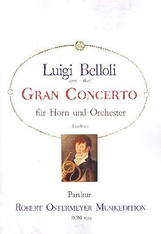 Sicher eines der schwersten Konzerte, welche für Horn komponiert wurden. Belloli vermerkt jedoch selber zahlreiche Erleichterungen. Als Datum wird der 17. Juni 1816 und Mailand vermerkt. Die Widmung auf dem Titelblatt (siehe rechts) geben Rätsel auf. Es könnte zunächst Napoleon zugedacht worden sein. Es ist aber auch möglich, das Belloli eine Komposition "Die Schlacht bei Wagram" plante, später jedoch das Notenpapier für das Hornkonzert nutzte. Das Konzert erscheint im Erstdruck.