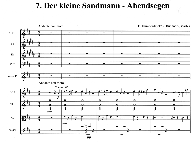 Streichersatz: Partitur mit Erzählung, 3 x VI l, 3 x VI II, 1 x VI III, 2 x Va, 3 x Vc / Kb.