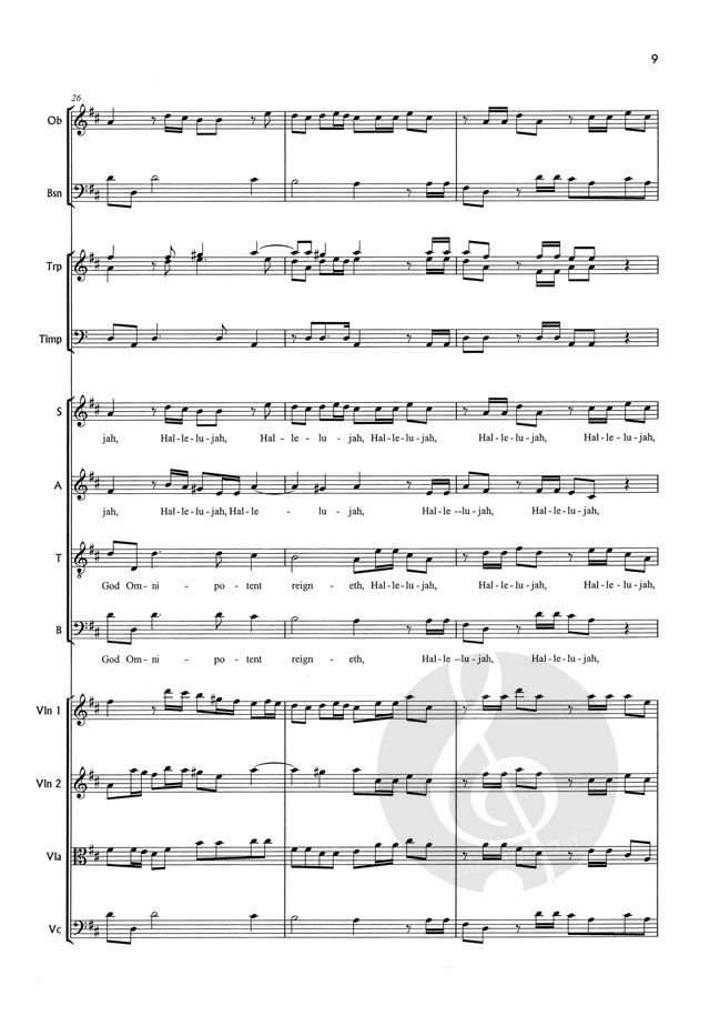 This edition gives the 'original' orchestration of 2 Oboes (though both play together doubling the soprano chorus line), Bassoon (continuo), 2 Trumpets (parts are given in D and Bb and are shown in the score at concert pitch), Timpani, strings and SATB chorus. However, additional parts are included for Flutes, Clarinets in Bb, Horns and Trombones which double the chorus lines and can be used either to reinforce the choral line or to replace it completely to provide an orchestra-only concert version. One chorus part is includedin the orchestral set and additional copies are available should they be required. Many choirs and singers already have copies of the 'Messiah' and most should be compatible with this orchestral version.