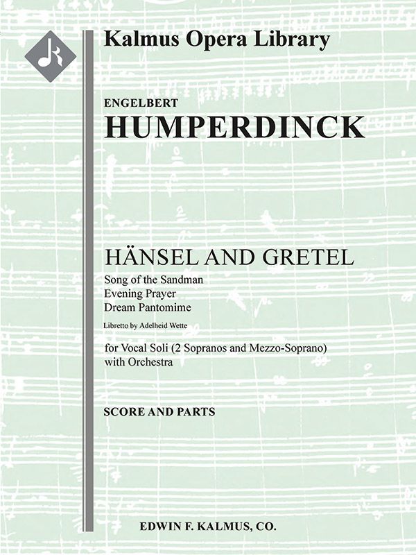Im Jahr 1890 schrieb Engelbert Humperdinck (1854-1921) eine Reihe von Liedern für ein Theaterstück, das seine Schwester Adelheid Wette als Geschenk für ihre Kinder verfasste. Auf Anregung seines Freundes Richard Strauss nahm er einige musikalische Ideen aus dieser Sammlung auf und schuf HÄNSEL UND GRETEL, eine abendfüllende Oper nach dem Märchen der Brüder Grimm. Sie wurde 1893 fertiggestellt und am 23. Dezember 1893 am Hoftheater in Weimar unter der Leitung von Strauss uraufgeführt. Infolgedessen ist es im Volksmund bis heute mit der Weihnachtszeit verbunden. Im zweiten Akt versuchen die beiden Kinder, aus einem dunklen Wald herauszufinden, und treffen auf das Sandmännchen, das ihnen Sandkörner in die Augen streut, um sie schläfrig zu machen. Bevor sie einschlafen, singen sie das berühmte Abendgebet. In der anschließenden Traumpantomime versammelt sich eine Schar von vierzehn Engeln, um über die schlummernden Kinder zu wachen. Besetzung: 2+Picc.1+EH.2.2: 4.2.3.1: Timp:Perc(2): Hp: Str (4.4.3.3.3 im Satz): Vocal Soli (3 Rollen S S MS).