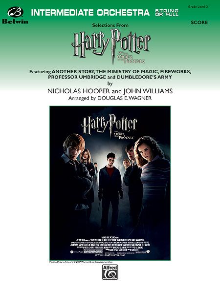 The adventures at Hogwarts continue with the fifth movie in the Harry Potter series, Harry Potter and the Order of the Phoenix. Highlights of Nicholas Hooper's brilliant score are masterfully arranged in this musical montage that captures all of the drama and gamut of emotion portrayed in the action-packed film. Beginning with the familiar 'Hedwig's Theme,' heard in previous scores, the medley also incorporates musical moments reminiscent of the change of climate at the Ministry of Magic, the deceptive Professor Umbridge, and the Patronus Charm with tunes titled: 'Another Story,' 'The Ministry of Magic,' 'Fireworks,' 'Professor Umbridge' and 'Dumbledore's Army.' An exhilarating musical journey for all ages! Designed to play with strings alone or with any combination of winds. (3:00)