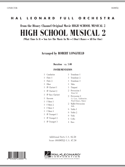Another smash hit from Disney has continued the High School Musical phenomena with new, infectious songs that appeal to all audiences. Robert Longfield's orchestral setting includes several of the memorable tunes: All for One, I Don't Dance, What Time Is It, You Are the Music in Me.