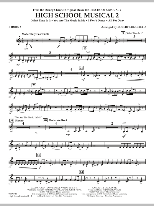 Another smash hit from Disney has continued the High School Musical phenomena with new, infectious songs that appeal to all audiences. Robert Longfield's orchestral setting includes several of the memorable tunes: All for One, I Don't Dance, What Time Is It, You Are the Music in Me.