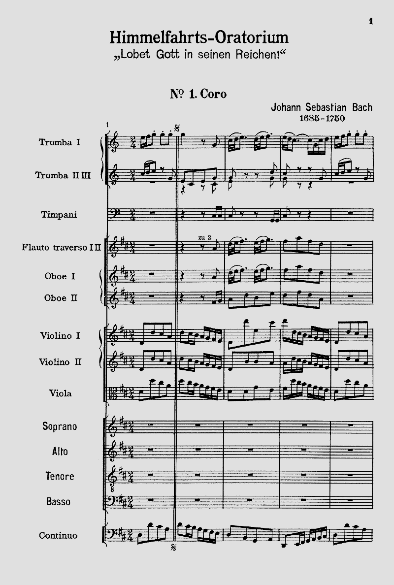 Himmelfahrtsoratorium. Soli SATB, Coro SATB, 2 Fl, 2 Ob, 3 Trb, Timp, 2 Vl, Va, Bc
