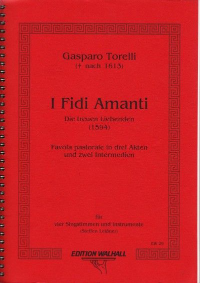 Für Sopran, Alt, Tenor, Baß, Chor ad lib. (ital.), 2 Schauspieler ad lib. ('Commedia dell'arte' - deutscher Text), 2 Barockviolinen, Barockviola, Violoncello, Violone, 2 Blockflöten, 4 Posaunen, 2 Lauten (auch Theorben), 2 Gamben ad. lib., Cembalo, Orgelpositiv (Regal) Text: Ascanio Ordei, Musik: Gasparo Torelli (Durata: 80''), Favola pastorale in 3 Akten, Erstausgabe, Instrumentation & musikalische Einrichtung: Steffen Leißner, Bühne/Textzusammenstellung: Heike Hanefeld. Das Aufführungsmaterial besteht aus 4 Chorpartituren, - Streicher, Bläser und Tamburinstimmen je einmal - 2 Partituren für die Lauten, 2 Textbüchern. Eine Partitur für den Dirigenten (Cembalo/Regalspieler) muß extra bestellt werden. Der Überraschungserfolg am Opernhaus Halle/Saale: I FIDI AMANTI (1594) verbindet den literarischen Anspruch des Pastoralspiels mit den musikalischen Möglichkeiten der Madrigalkomödie. Die Handlung besteht aus Teilen der beiden bedeutendsten Hirtendramen des späten 16. Jahrhunderts: aus Torquato Tassos 'Aminta' und Giovanni Battista Guarinis 'Il Pastor Fido'.