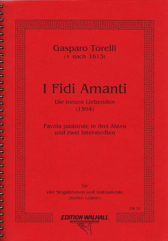 Text: Ascanio Ordei, Musik: Gasparo Torelli , Favola pastorale in 3 Akten, Erstausgabe, Instrumentation & musikalische Einrichtung: Steffen Leissner, Bühne/Textzusammenstellung: Heike Hanefeld. Das Aufführungsmaterial besteht aus 4 Chorpartituren, - Streicher, Bläser und Tamburinstimmen je einmal - 2 Partituren für die Lauten, 2 Textbüchern. Eine Partitur für den Dirigenten (Cembalo/Regalspieler) muss extra bestellt werden. Der Überraschungserfolg am Opernhaus Halle/Saale: I FIDI AMANTI (1594) verbindet den literarischen Anspruch des Pastoralspiels mit den musikalischen Möglichkeiten der Madrigalkomödie. Die Handlung besteht aus Teilen der beiden bedeutendsten Hirtendramen des späten 16. Jahrhunderts: aus Torquato Tassos 'Aminta' und Giovanni Battista Guarinis 'Il Pastor Fido'.