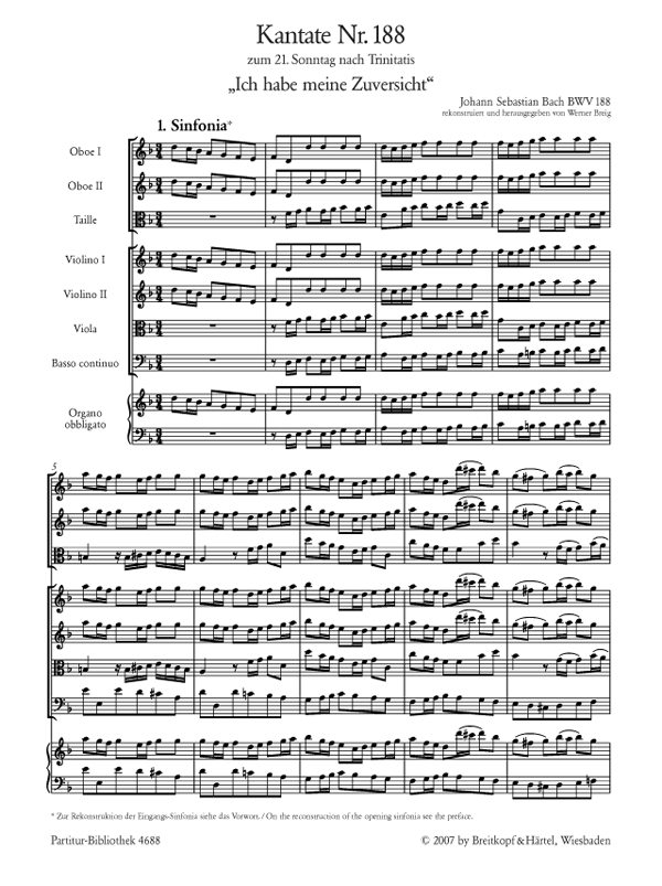 Kantate BWV 188 Rekonstruktion mit unterlegtem Klavierauszug