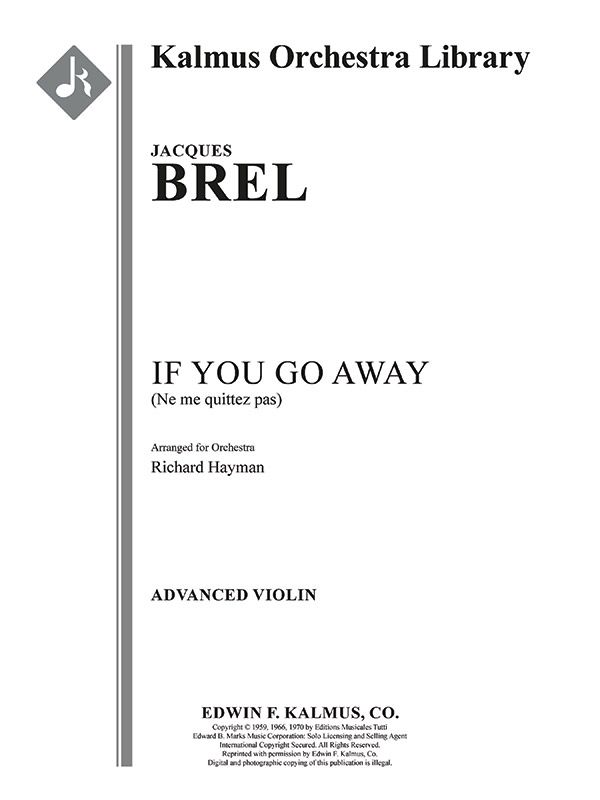 Der belgische Sänger, Schauspieler und Komponist Jacques Brel (1929-1978) schrieb 1959 die Musik und den Text für Ne me quitte pas (Wenn du weggehst). Das Lied wurde später von Rod McKuen mit einem englischen Text versehen, und das Werk gilt als Pop-Standard, der von vielen Künstlern aufgenommen wurde. Diese Orchestrierung wurde von Richard Hayman (1920-2014) fertiggestellt, der eine sehr erfolgreiche Karriere als Chefarrangeur des Boston Pops Orchestra hatte, eine Zusammenarbeit, die über 50 Jahre andauerte, und der auch als Pop-Dirigent für verschiedene Orchester wie das Detroit Symphony Orchestra, das St. Louis Symphony und das Grand Rapids Symphony tätig war. Besetzung: 2.2.2.2: Sax(4-SATB, opt.): 4.3.3.1: Timp.Perc(5): Hp.Gtr(opt.): Str (9-8-7-6-5 im Satz).