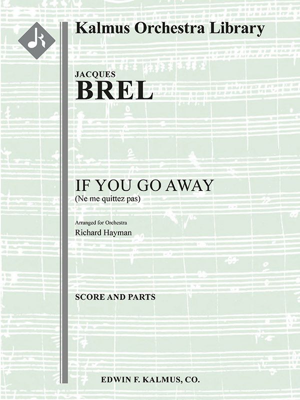 Der belgische Sänger, Schauspieler und Komponist Jacques Brel (1929-1978) schrieb 1959 die Musik und den Text für Ne me quitte pas (Wenn du weggehst). Das Lied wurde später von Rod McKuen mit einem englischen Text versehen, und das Werk gilt als Pop-Standard, der von vielen Künstlern aufgenommen wurde. Diese Orchestrierung wurde von Richard Hayman (1920-2014) fertiggestellt, der eine sehr erfolgreiche Karriere als Chefarrangeur des Boston Pops Orchestra hatte, eine Zusammenarbeit, die über 50 Jahre andauerte, und der auch als Pop-Dirigent für verschiedene Orchester wie das Detroit Symphony Orchestra, das St. Louis Symphony und das Grand Rapids Symphony tätig war. Besetzung: 2.2.2.2: Sax(4-SATB, opt.): 4.3.3.1: Timp.Perc(5): Hp.Gtr(opt.): Str (9-8-7-6-5 im Satz).