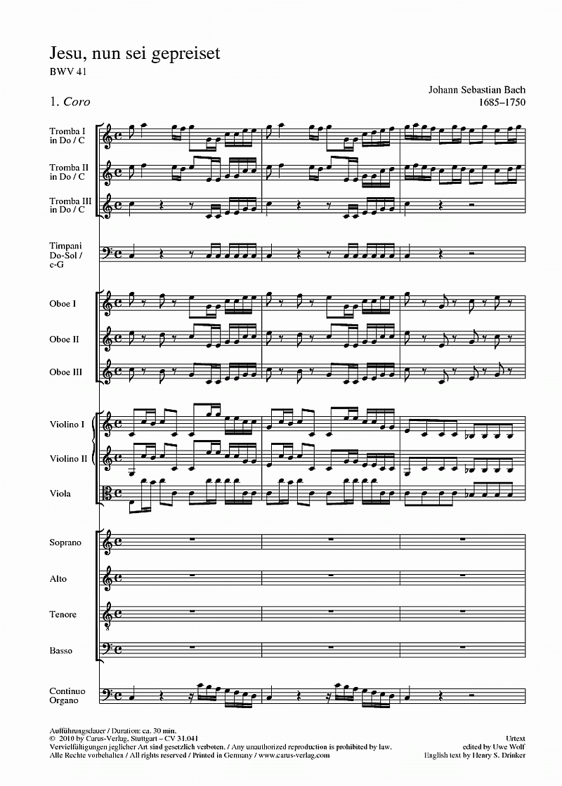 - Besetzung Soli, Gemischter Chor (SATB), Orchester und Basso Continuo