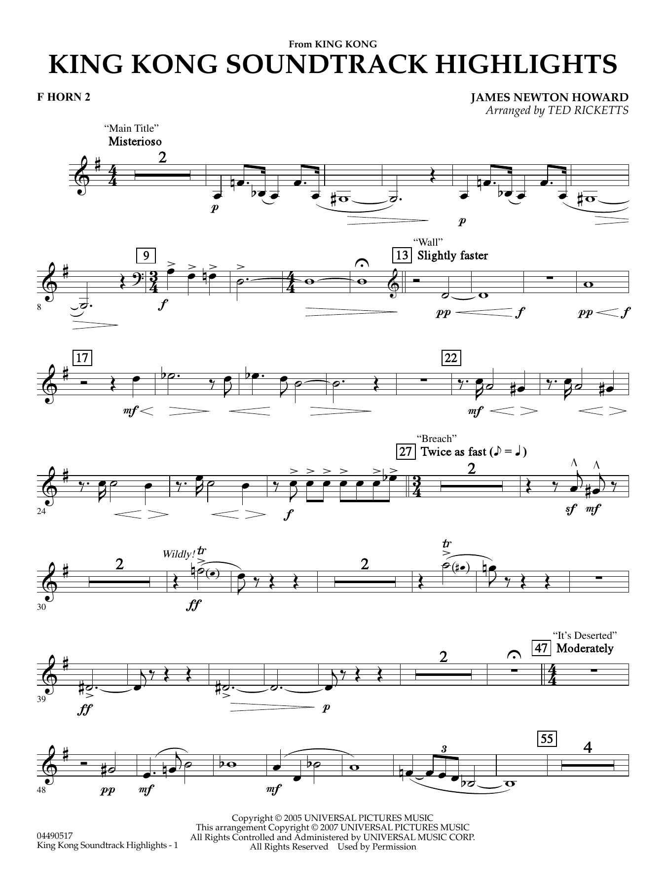 The classic cinematic tale of King Kong has made its mark with another generation of movie lovers with this year's blockbuster film by Peter Jackson. James Newton Howard's musical backdrop is filled with powerful, dramatic, and beautiful themes, all included in this suite for the concert stage.